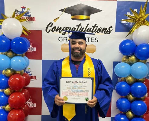 En Rios Trade School, anteriormente conocida como HVAC-Rios, llevamos más de 30 años liderando la educación técnica en el Norte de Indiana, ofreciendo programas intensivos en HVAC (Calefacción, Ventilación y Aire Acondicionado), Soldadura y Electricidad, completamente en español. Dirigidos por Jaime Ríos, un experto dedicado a la excelencia y el servicio comunitario, estamos comprometidos a abrir puertas a un futuro prometedor para nuestros estudiantes.